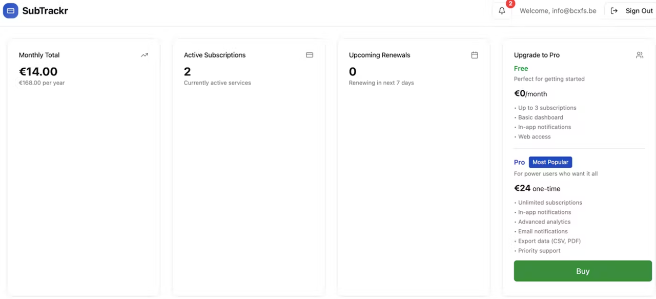 Never get caught off guard by unexpected subscription charges again. SubTrackr is the ultimate subscription management app that helps you track, manage, and optimize all your recurring subscriptions in one beautiful, easy-to-use dashboard.