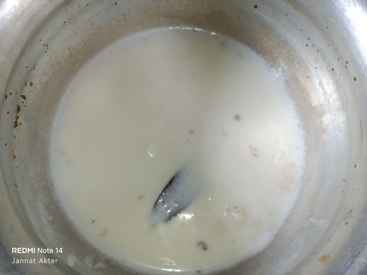 You have to stir with a spoon until the rice boils. If you do not stir, it may stick to the bottom of the pot. When the rice boils, the milk will gradually thicken. Now you have to understand that milk pies are ready.