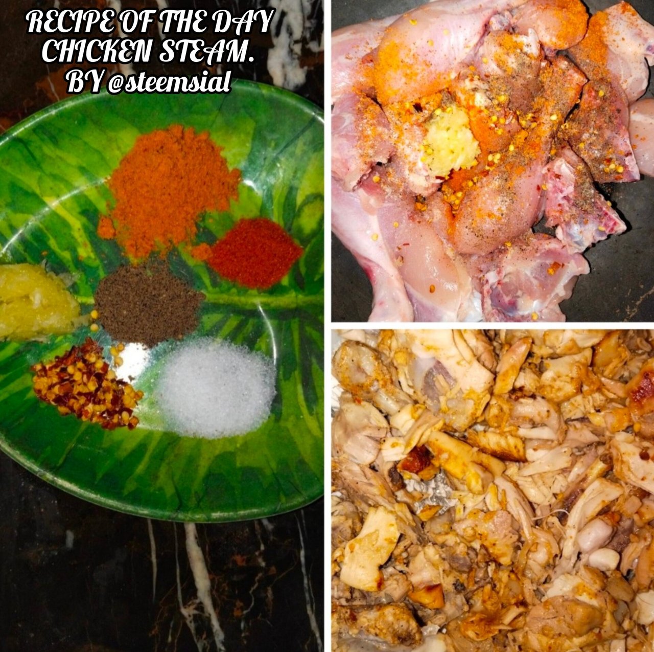 Assalamualaikum!!! Greeting you Dear all friends,hope you all are doing well and happy. I'm your steemian as @steemsial and here with you at an amazing platform of steemit. I'm here with you with a new post to share the easy and complete recipe of steam chicken. In this post I'm going to complete the "contest:The Recipe Of The Day. Week No 78".