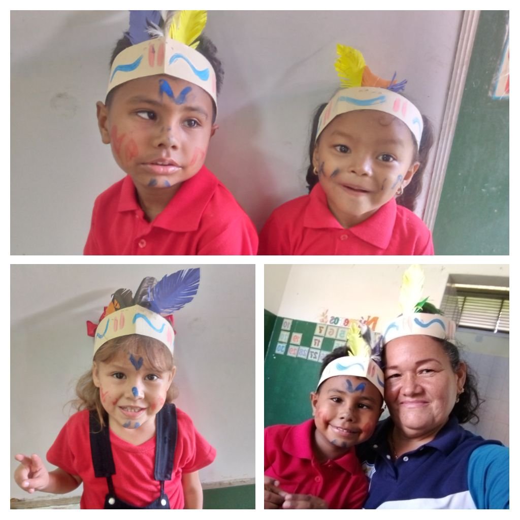 En nuestra aula describimos la vestimenta y atuendo de nuestros Primeros Pobladores, como los penachos y como adornaban su cuerpo con pintura natural,