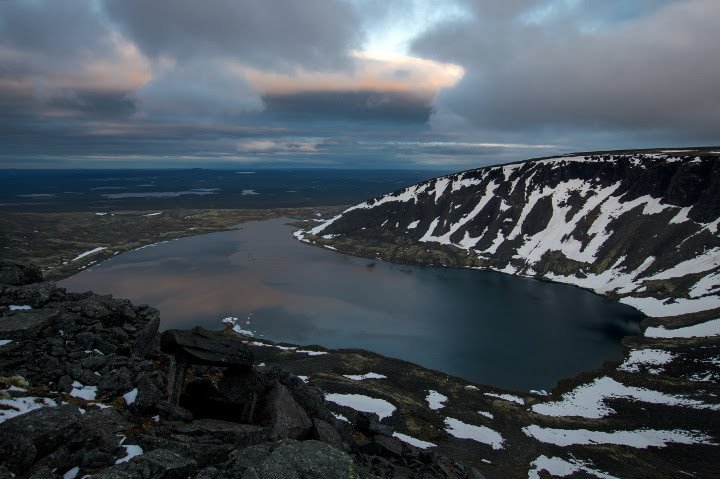 Спешно собираемся и идем. До озера действительно недалеко, и вскоре нам открывается на него потрясающий вид. Райявр — горное озеро, оно расположено выше Сейда и лишено растительности. Спуститься к нему также весьма проблематично, поэтому мы ограничились осмотром с верхней точки. Озеро действительно очень красивое.