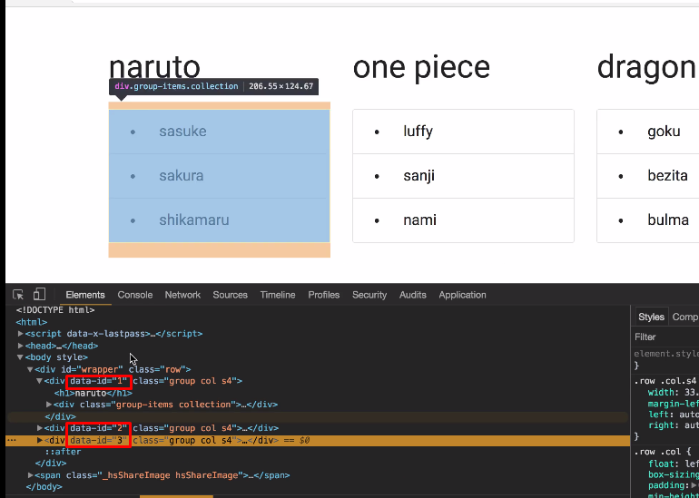 We will change the order when we drag and drop the group in frontend section. we can get element we are dragging with onUpdate () method on sortable, not only that we can also get attributes that exist in the element which will be useful when we use ajax to post data to the database.