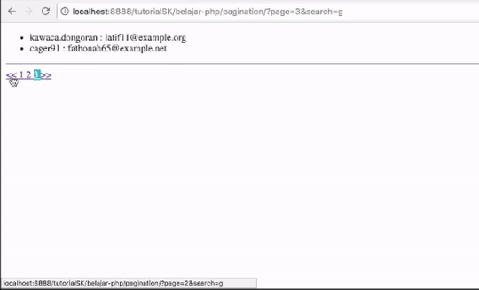 We can see the result like this, but as we have seen there are pictures. when we click the page number. we will return to the URL page=pageNumber. Should be when we click page number we will go to URL with query parameter search like this. ?page=pageNumber&search=keyword.