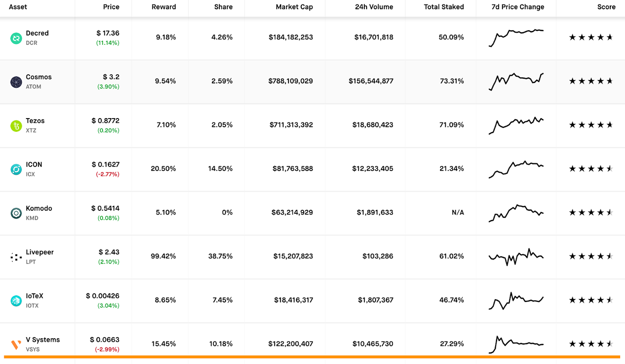 Screenshot from stakingrewards.com on 01 Nov 2019
