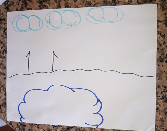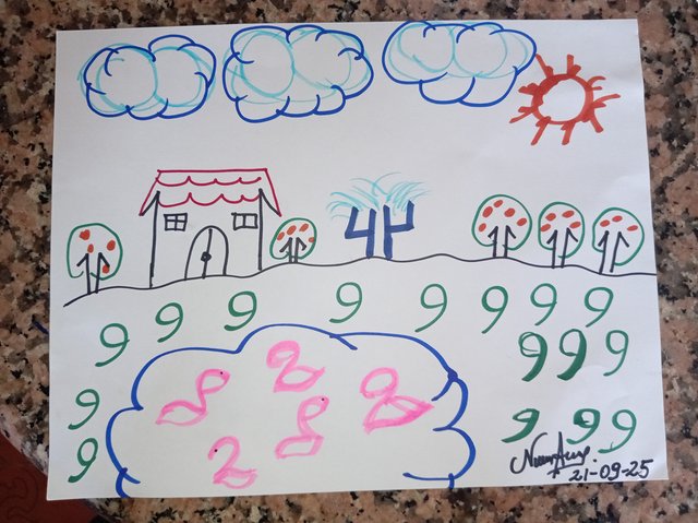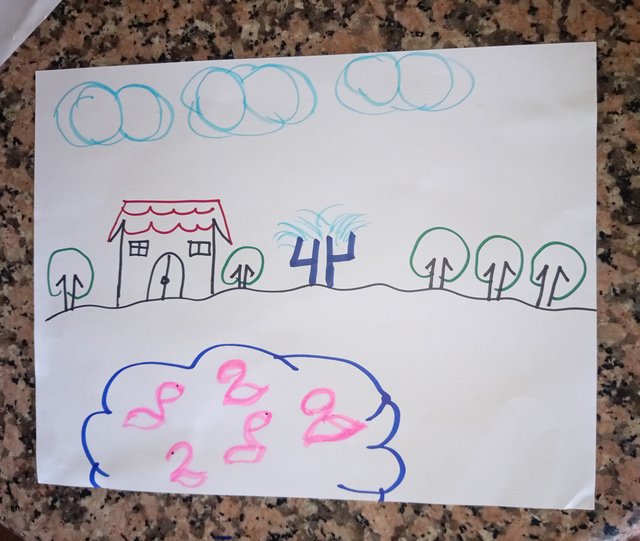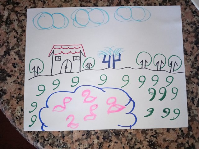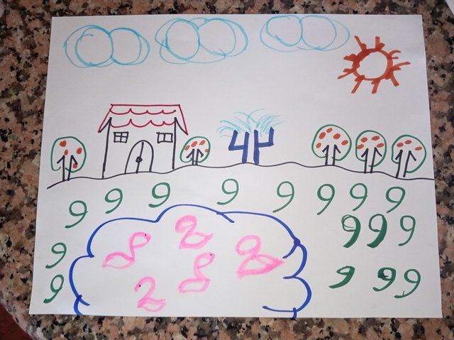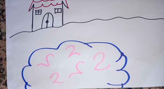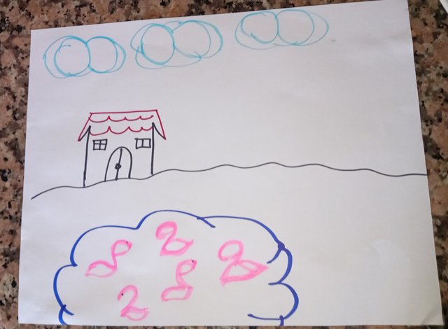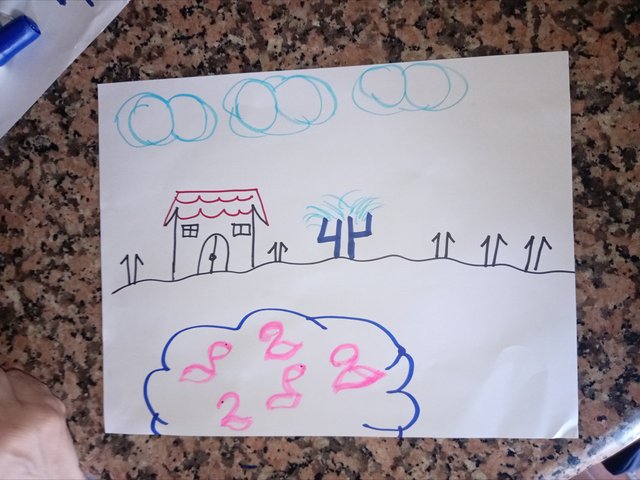 Luego con el número 8 hice las nubes y con el número 1 las paredes de la casa.