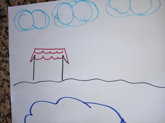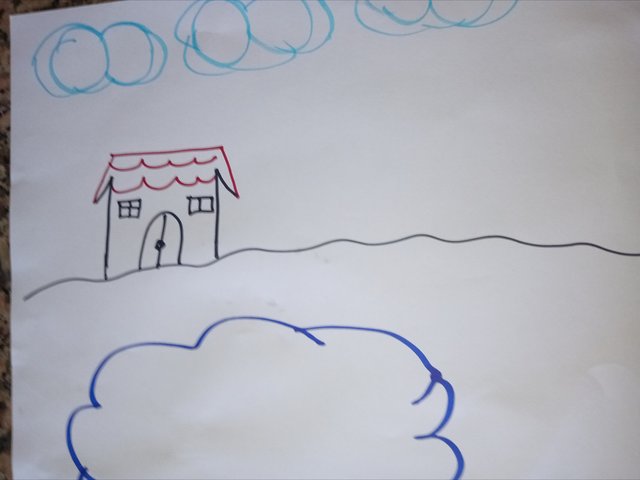 Después con el número 3 dibujé el techo de la casa y aproveche de hacerle las ventanas y la puerta.