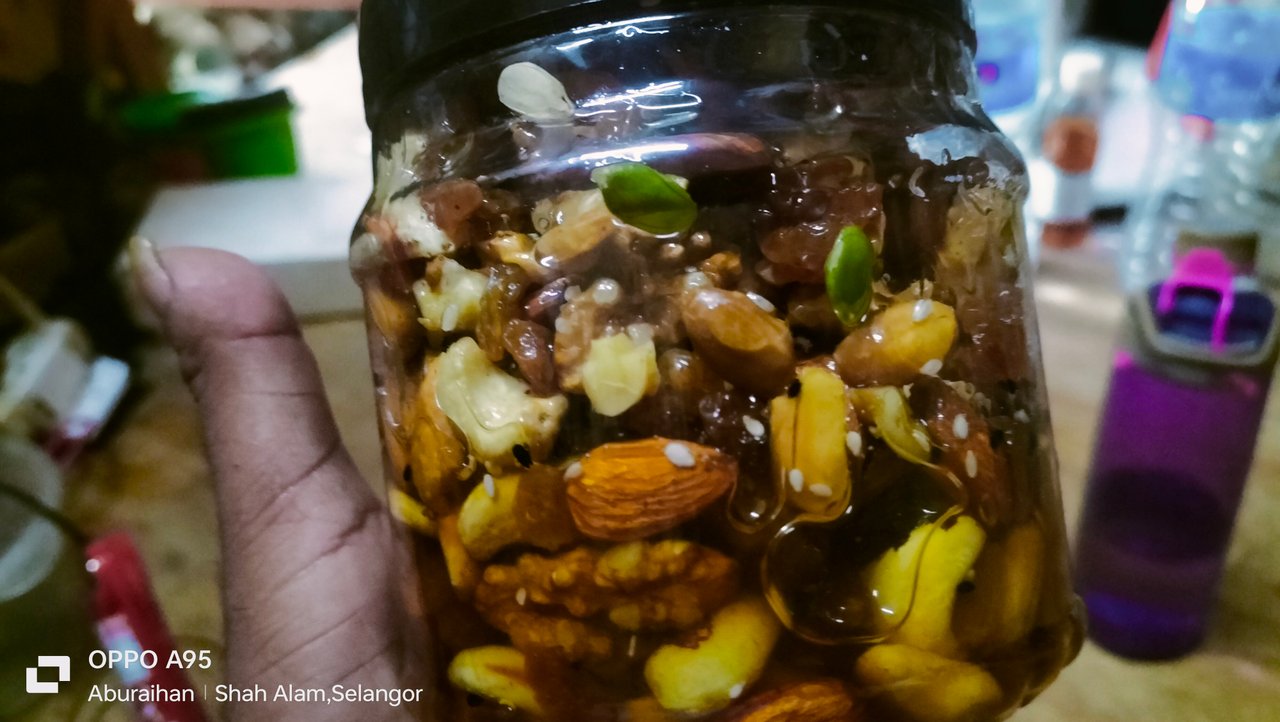 আমি একজন প্রবাসী যার ফলে সকালে প্রতিদিন ভাত খাওয়া সম্ভব না বা নাস্তা করা সম্ভাব্য হয়ে ওঠে না যার ফলে সকালে হালকা একটু নাস্তার পরিমাণ ব্যবস্থা করে রাখতে হয় কারণ ঘুম থেকে উঠেই অতি ব্যস্ততার মধ্যে দিয়ে ডিউটিতে যাওয়ার জন্য প্রস্তুতি নিতে হয় এজন্য আমি সকালে কিছু খেজুর ও কাঠবাদাম চেনা বাদাম কার্য বাদাম আর কিছু পরিমাণ কিসমিস খায়।