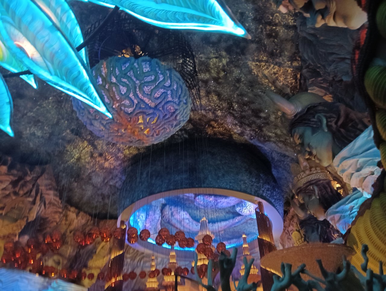 "এটি প্যান্ডেলের উপরের চিত্র যেখানে বিভিন্ন ধরনের লাইটিং ও রঙিন ঝাড়বাতি দিয়ে সাজানো। প্যান্ডেলের চারিপাশে গোল্ডেন কালার দিয়ে সাজানো যখন এর উপর রঙ্গিন আলো এসে পড়ছে তখন আলাদা সৌন্দর্যের সৃষ্টি হচ্ছে"।