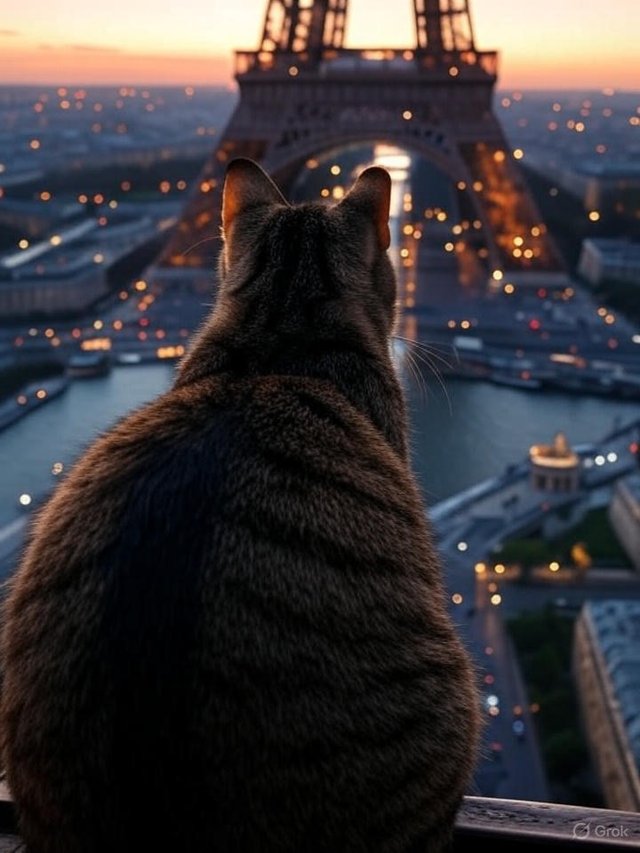 파리의 아름다움과 의미 속에서, 고양이는 잠시 세상의 복잡함을 잊었다.