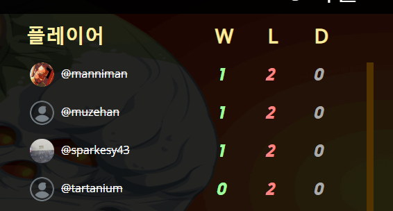 저번 토너먼트 도전은 참가도 못해보고 끝나 버렸지만, 오늘은 저번에 무슨 문제였는지 "@marabara" 님 께서 알려 주셨기에 문제없이 참가 할수 있었습니다. 이 자리를 빌어 @marabara님께 감사 인사를 드립니다. ^^